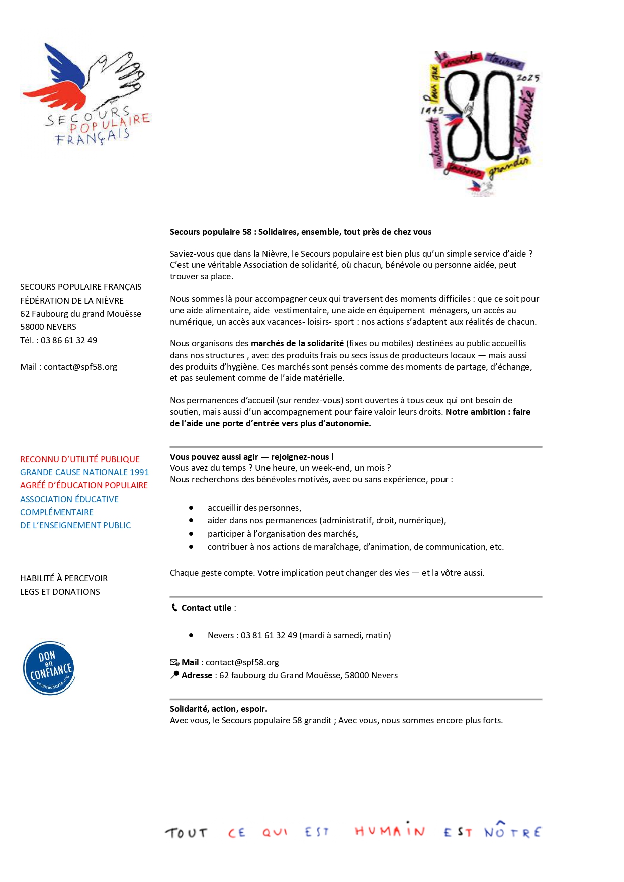 Secours populaire 58 : Solidaires, ensemble, tout près de chez vous
